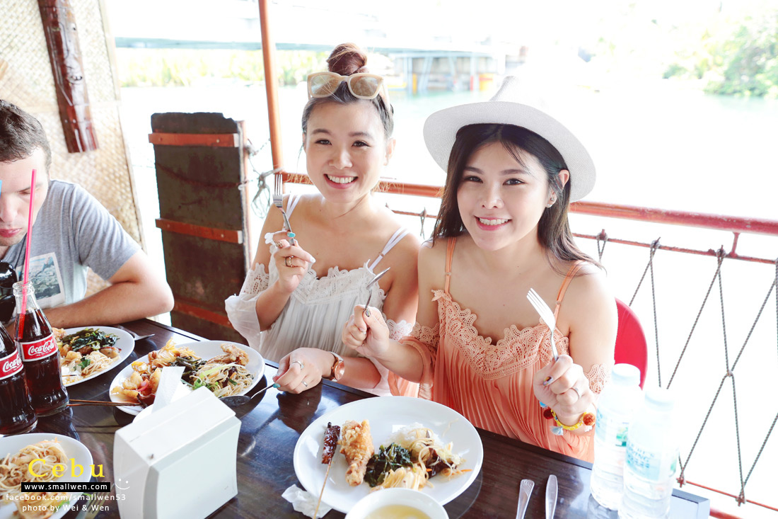午餐是在漂流竹筏上用餐,大型竹筏會開船啟動